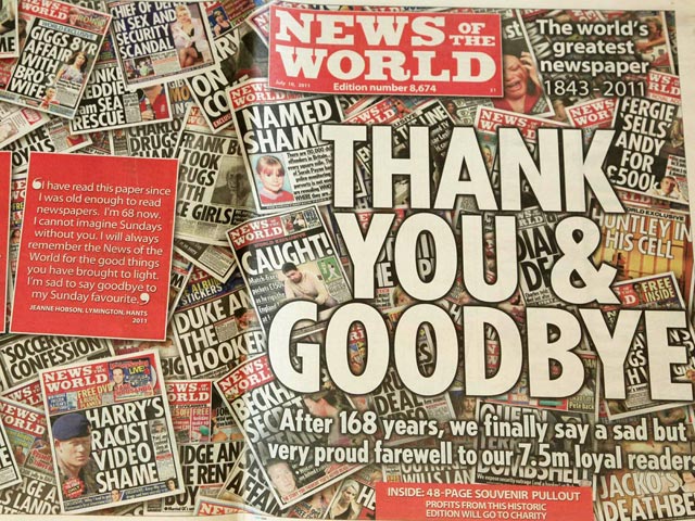 Как сообщалось, медийная корпорация News International, принадлежащая Руперту Мэрдоку, приняла решение прекратить выпуск просуществовавшего почти 170 лет таблоида в связи со скандалом о незаконном прослушивании телефонов жертв преступлений, а также политиков и других знаменитостей.