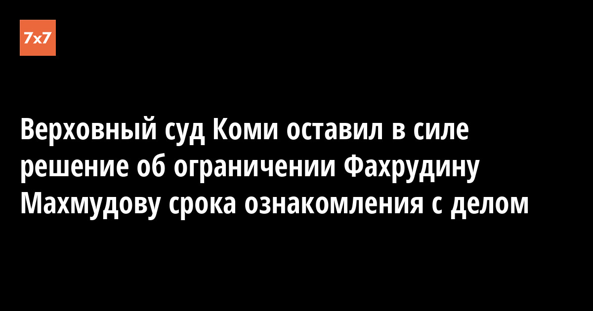Верховный суд Коми оставил в силе решение об ограничении Фахрудину Махмудову срока ознакомления с делом