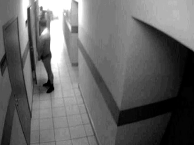 На записи видно, как сначала из одного из кабинетов нетвердой походкой выходит мужчина. Потом он заходит обратно и через некоторое время появляется в коридоре уже без верхней одежды. Этот гражданин начинает справлять нужду прямо у дверей кабинета.