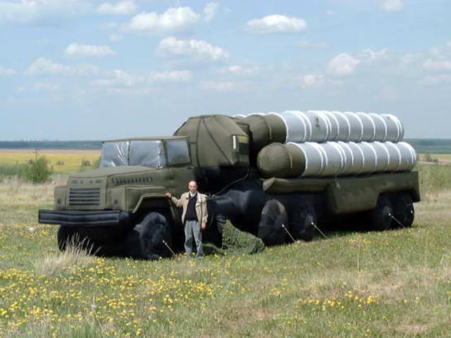 На вооружении российской армии в дополнение к надувным макетам истребителей и танков скоро появятся подобные макеты зенитных ракетных комплексов (ЗРК), имитирующих реальные средства ПВО. Государственные испытания резиновых ракет начнутся в августе, и Минобороны РФ планирует внести эти изделия в гособоронзаказ 2012 года, сообщил начальник группы по госзаказам Научно-производственного предприятие "РусБал" ("Русский баллон") Олег Такшеев.