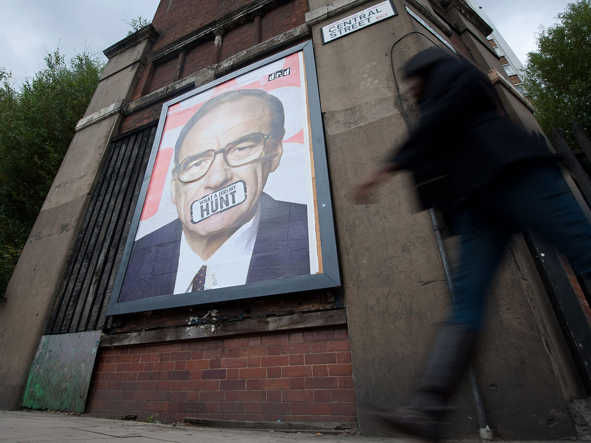Слушания в парламентском комитете были открытыми и проходили в присутствии публики. Показания Руперта Мёрдока были прерваны, когда один из присутствовавших в зале бросил во владельца News Cоrporation тарелку, наполненную пеной для бритья. Этот человек был сразу же арестован, позднее выяснилось, что это был комический актер Джонатан Мэу-Боулз. Слушания возобновились, и Мердок-старший зачитал заявление, в котором, в частности, сказал: