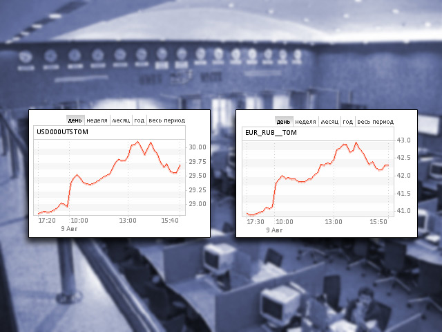 Рубль усилил падение к доллару и евро днем на ММВБ, бивалютная корзина поднялась до максимума с начала года на фоне крайне высокой неопределенности на фондовых рынках. Доллар поднимался на ММВБ днем во вторник до уровня 30,2 рубля, что на 1 рубль 23 копейки выше уровня предыдущего дня, сообщает "Интерфакс".