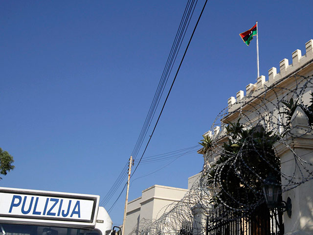 Как сообщали зарубежные СМИ, ливийские посольства в ряде стран в понедельник сменили зеленый стяг Великой Социалистической Народной Ливийской Арабской Джамахирии на трехцветный флаг, используемый оппозицией.