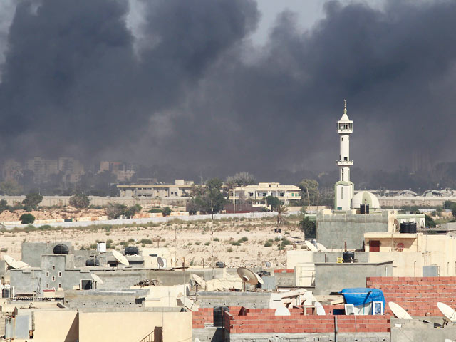 Успешному продвижению антиправительственных формирований способствовали интенсивные удары ВВС НАТО. С территории резиденции Каддафи уже несколько часов вздымаются клубы черного дыма.