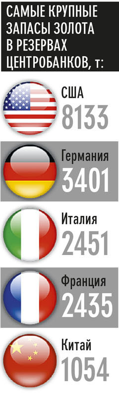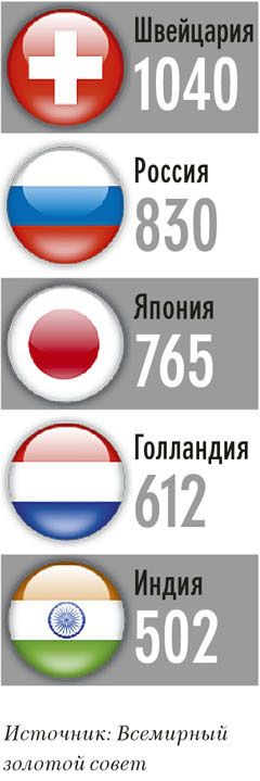 Столь ценное свойство драгметалла профессионалы заметили еще до биржевой паники. Страхуясь от инфляции и удешевления доллара, центральные банки развивающихся стран (Мексики, Таиланда, Южной Кореи, Казахстана, России), не сговариваясь, стали спешно пополнять свой золотой запас. В лидерах этого процесса оказался российский Центробанк: в первом полугодии 2011 года он прикупил 36 т золота, в результате чего золотой запас страны достиг 830 т, а доля золота в международных резервах — 7,8%. Не отстают и отечественные коммерческие банки: за январь-май 2011 года они закупили у добывающих компаний 137,74 т золота. Лидером по закупкам драгоценного металла стал Сбербанк: он приобрел 35,3 т.
