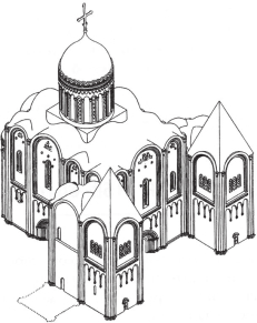 Так или иначе, к 1161 г. храм был готов. Тогда он выглядел иначе: в нем не было галерей, а о количестве глав до сих пор спорят — то ли одна глава была, то ли пять. С реконструкцией первоначального облика церкви cвязана интересная путаница. Известный историк владимиро-суздальской архитектуры Николай Воронин поначалу предложил оригинальную схему реконструкции — трехглавую, с двумя отдельными лестничными башнями. Потом он сам от нее отказался, поскольку реконструкция не подтвердилась натурными наблюдениями. Но до сих пор по монографиям и учебникам кочует эта неправильная реконструкция — слишком уж красиво.