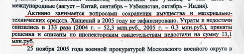 Из характеристики: «С приходом в 2004 г. полковника Сабатовского на должность начальника тыла ВТА утраты и недостачи в частях и соединениях ВТА сократились в 133 раза»