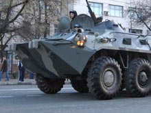 В пресс-службе Внутренних войск МВД РФ сообщили, что столкнувшийся с легковушкой бронетранспортер следовал в колонне военной техники, которую сопровождала машина военной автоинспекции, оснащенная проблесковым маячком и специальной табличкой. Автомобиль получил незначительные повреждения. На место происшествия вызваны сотрудники ГИБДД, сообщает РИА "Новости".