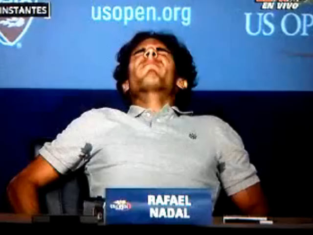 Надаль общался с испанскими СМИ часа через два после того, как закончился его матч с аргентинцем Давидом Налбандяном. Вдруг теннисист откинулся в кресле и закрыл лицо руками. Журналистов попросили удалиться из комнаты, Рафе срочно принесли пакетики со льдом и питьевую воду. Через 10 минут пресс-конференция возобновилась.