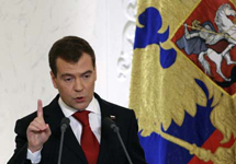 "Всем известно о проблемах, с которыми сталкивается российское общество. Мы ведем многолетнюю борьбу с сепаратизмом и терроризмом, и хотя враг ослаблен, но он не добит окончательно", - сказал Медведев.