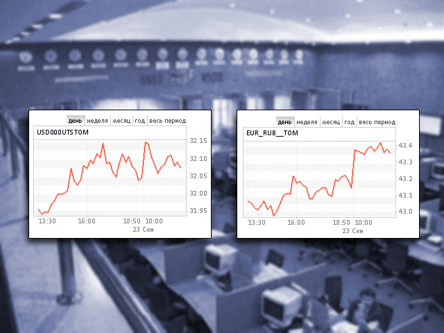 Средневзвешенный курс доллара США к российскому рублю со сроком расчетов "завтра" на торгах единой торговой сессии ММВБ по состоянию на 11:30 по московскому времени, на основе которого происходит процесс курсообразования доллара на следующий день, повысился на 19,77 копейки и составил 32,1083 рубля, передает "Финмаркет".