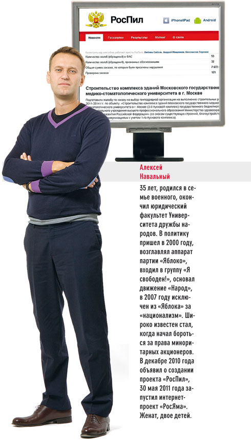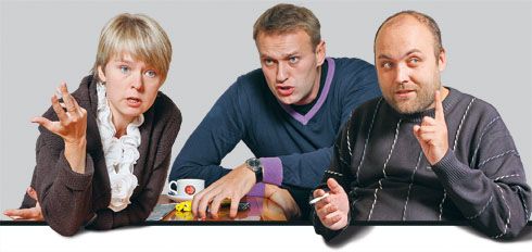 Навальный: Я считаю, что наиболее эффективный способ политической борьбы сейчас — это развитие гражданских идей с выдвижением политических требований. То есть когда экологи просто ходят хороводом и говорят, что мы за березы, но мы не лезем в политику, — это ничего не дает, а вот экологи, которые говорят: мы ходим вокруг берез, но березы наши рубят, потому что вот эти конкретные товарищи — жулики, и жульническая власть должна быть сменена, — вот это правильные экологи. То же и с «Синими ведерками»: очевидно, что эта власть от мигалок никогда не откажется, потому что беспредел во всех властных структурах страны, а не только на отдельных дорогах.