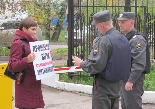 Очередной пикетчик появился у прокуратуры с новым плакатом, правда, с тем же текстом («Прокуратура, верни Стефановскую площадь митингующим!») – у проводившей вчера пикет Влады Эмет ее плакат изъяли в полиции как вещдок.
