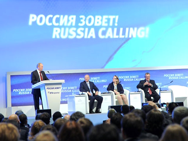 Впервые после съезда "Единой России", на котором было объявлено о выдвижении Владимира Путина в президенты в 2012 году, пока еще премьер выступил перед иностранными инвесторами. Форум "Россия зовет!" состоялся в московском Центре международной торговли и собрал более 500 зарубежных участников. Путин анонсировал им политику своего уже третьего президентского срока, и тон его выступления был оптимистичен: в России не только не будет второй волны кризиса, а наоборот, будет подъем и выход из первой, объявил он.