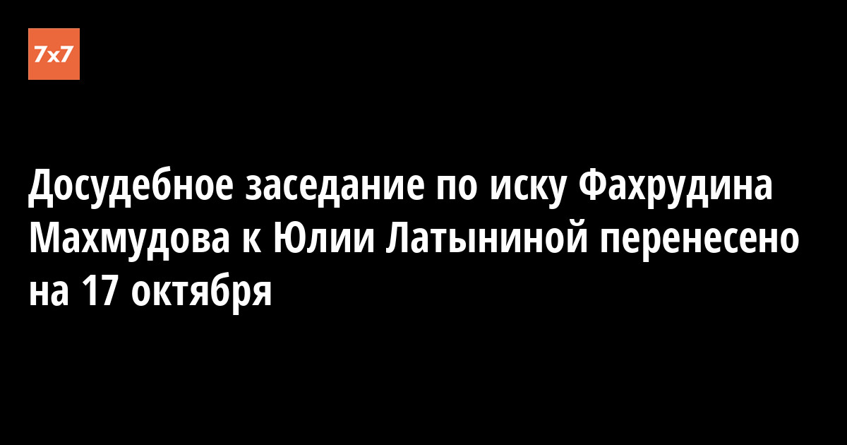 Сегодня, 10 октября, судья Пресненского районного суда Москвы Юлия Садовова перенесла на 17 октября досудебное заседание по иску о защите чести и достоинства, поданному обвиняемым в организации поджога ухтинского торгового центра «Пассаж» Фахрудином Махмудовым к журналистке Юлии Латыниной, которая в своей передаче «Код доступа» 31 июля с.г. сделала ряд порочащих его заявлений.