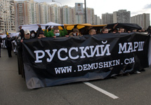 На прошлой неделе стало известно, что московские власти отказали националистическим организациям в согласовании "Русского марша". Как заявил Дмитрий Демушкин, в проведении акции было отказано по формальной причине: организаторы ошиблись в цифре подпункта закона о массовых мероприятиях. При подаче заявки они выбрали подпункт "шествие", а намеревались позиционировать "Русский марш" как "культурно-массовое мероприятие".