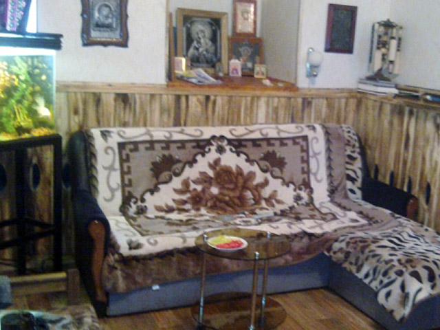 Интерьер дополняли иконы на стенах и массивный отделанный янтарем деревянный крест. А в шкафу был спрятан бар с дорогими импортными водками, коньяками и виски. Там же хранилась коллекция мужской парфюмерии и гражданская одежда.