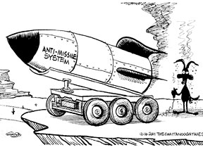 Москва придумает адекватный ответ на размещение системы противоракетной обороны Соединенными Штатами в Европе. Источник в Кремле сообщил «Коммерсанту», что у российских властей уже есть «общее понимание того, что надо делать». «Наш ответ обойдется дешево, но будет чрезвычайно эффективным», — заявил собеседник газеты.