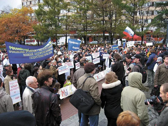 Еще одним заметным отличием от проходивших ранее акций ученых стало объединение сил различных зарегистрированных и неформальных общественных организаций — профсоюза работников РАН, инициативной группы молодых ученых, инициативной группы студентов, аспирантов и сотрудников МГУ, профсоюза работников образования «Учитель» и Российского студенческого союза. Требования объединили не только различные организации: на митинг пришли люди с совершенно разными политическими взглядами и точками зрения на то, как следует выводить российскую науку из кризиса. Более красноречивого свидетельства того, что нынешняя политика государства по отношению к науке, говоря фигурально, «достала» буквально всех, найти сложно.