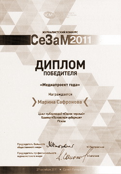 27 октября на ежегодном форуме средств массовой информации Северо-Запада проект «Сорок чёрный», вышедший в свет в «Псковской губернии» летом 2011 года, был признан медиапроектом года на Северо-Западе России.