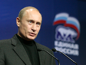 После того, как губернаторская фронда подняла руки вверх и на базе двух движений была слеплена партия «Единая Россия», Путин пригодился и ей. «Россия должна быть сильной, единой. В.В.Путин» гласила агитация единороссов в 2003 году. В 2007 году единороссы и вовсе возвеличили президента Путина настолько, что присвоили ему звание лидера партии и даже лидера нации.
