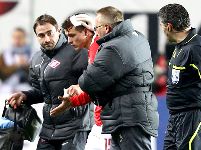 После удара Кураньи на голове капитана "Спартака" появилась восьмисантиметровая рваная рана