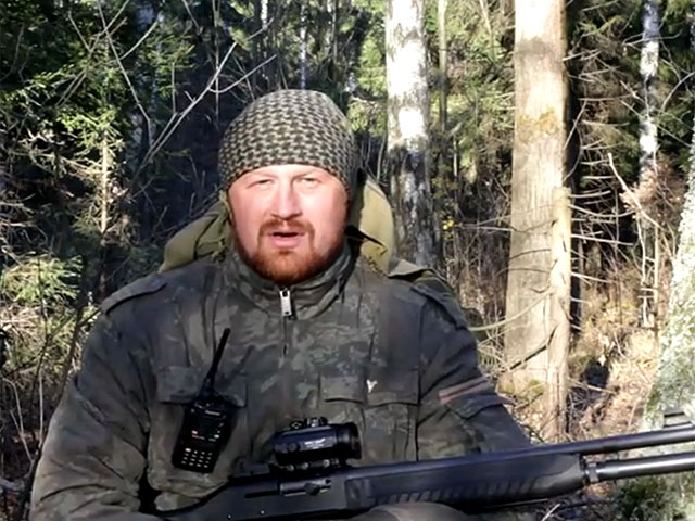 Новое видеообращение он снял в лесу, а перед камерой сидит в камуфляжном костюме, с ружьем и рацией. "Я думаю..., что события, происходящие сейчас в стране, целиком и полностью ведут к той черте, когда Россия встанет перед выбором, Русь встанет перед выбором, русичи будут стоять перед выбором: или встать на колени, поклониться новым хозяевам..., или все-таки отстоять землю-матушку нашу, которая нас никогда не предавала", - цитирует его "Газета.Ru".