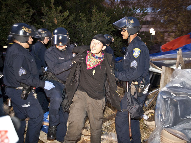 Полиция снесла палаточный городок сторонников общественного движения "Оккупируй Уолл-стрит" в американском городе Окленд (штат Калифорния). Как передает ИТАР-ТАСС со ссылкой на местные СМИ, отряды полицейских, выполняя распоряжение городских властей, окружили разбитый на площади перед зданием мэрии палаточный городок, в котором находились несколько сотен активистов. Большинство демонстрантов предпочли не дожидаться грозившего им ареста и, свернув свои палатки, отошли на соседние улицы.