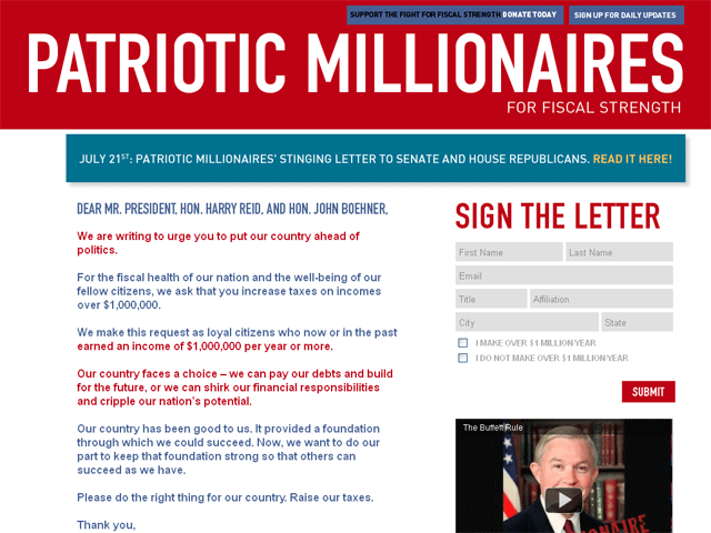 Письмо подписали 138 членов группы "Патриотичные миллионеры за сильную экономику". Объединение было создано в 2010 году для изменения закона о сокращении налогов. Этот билль был принят при президенте Джордже Буше.