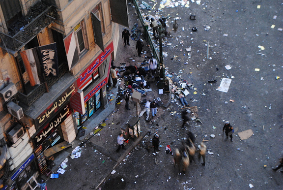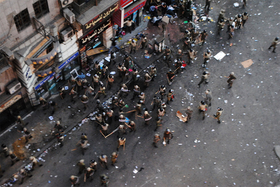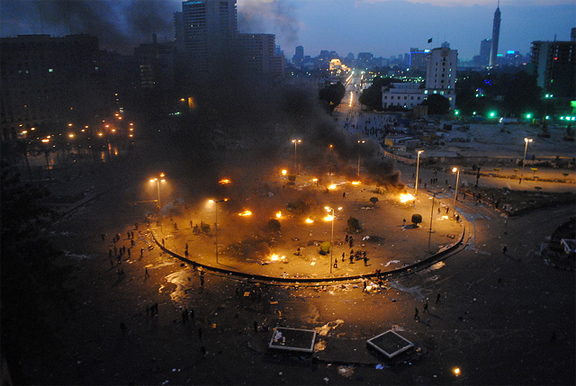 - 21 ноября протестующие забаррикадировали Тахрир, подожгли баррикады вокруг площади и стали бросать камни в сторону полиции и военных. Те ответили демонстрантам дубинками и слезоточивым газом. Хотя силы правопорядка и отрицают использование боевого оружия, оппозиционеры демонстрируют зарубежным журналистам гильзы от использованных патронов. Более того, демонстранты утверждают, что полиция на этот раз действует более жестко, чем во времена экс-президента Мубарака.