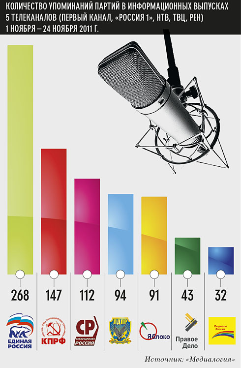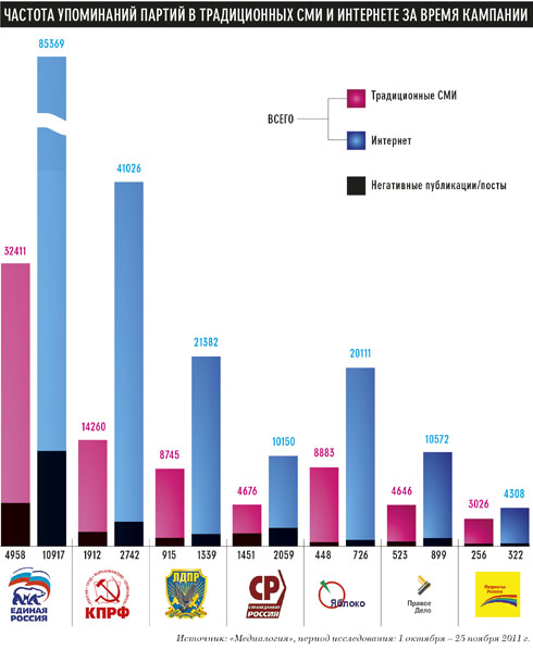 Источник: «Медиалогия», период исследования: 1 октября – 25 ноября 2011 г.