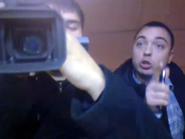 Исполнительный директор ассоциации "Голос", правозащитник Григорий Мельконьянц, встретивший НТВшников, заявил, что уже несколько раз за последние дни давал им интервью и отказался разговаривать с гостями, опасаясь, что в эфире он увидит совсем другое из-за "профессионального" монтажа. На этот раз он решил не давать телевизионщикам больших "исходников", из которых они смогли бы смонтировать свою версию происходящего.