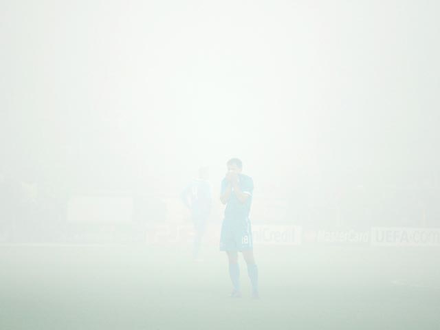 На 56-й минуте немецкий судья Феликс Брих посчитал, что продолжать матч в таких условиях невозможно, и остановил встречу. Через несколько минут команды вернулись на поле и продолжили игру.