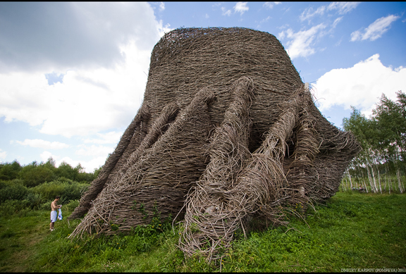 Фестивалю ландшафтных объектов «Архстояние» уже пятый год (см. подробнее на вебсайте фестиваля). Задуманный Николаем Полисским как полигон творческих архитектурных идей, сначала на небольшом клочке земли на берегах Угры, потом разросшийся до сотни гектаров, фестиваль захватил бывшие колхозные поля и заповедные перелески. Теперь экспозиции соседствуют с перфомансами и спонтанными исследованиями.