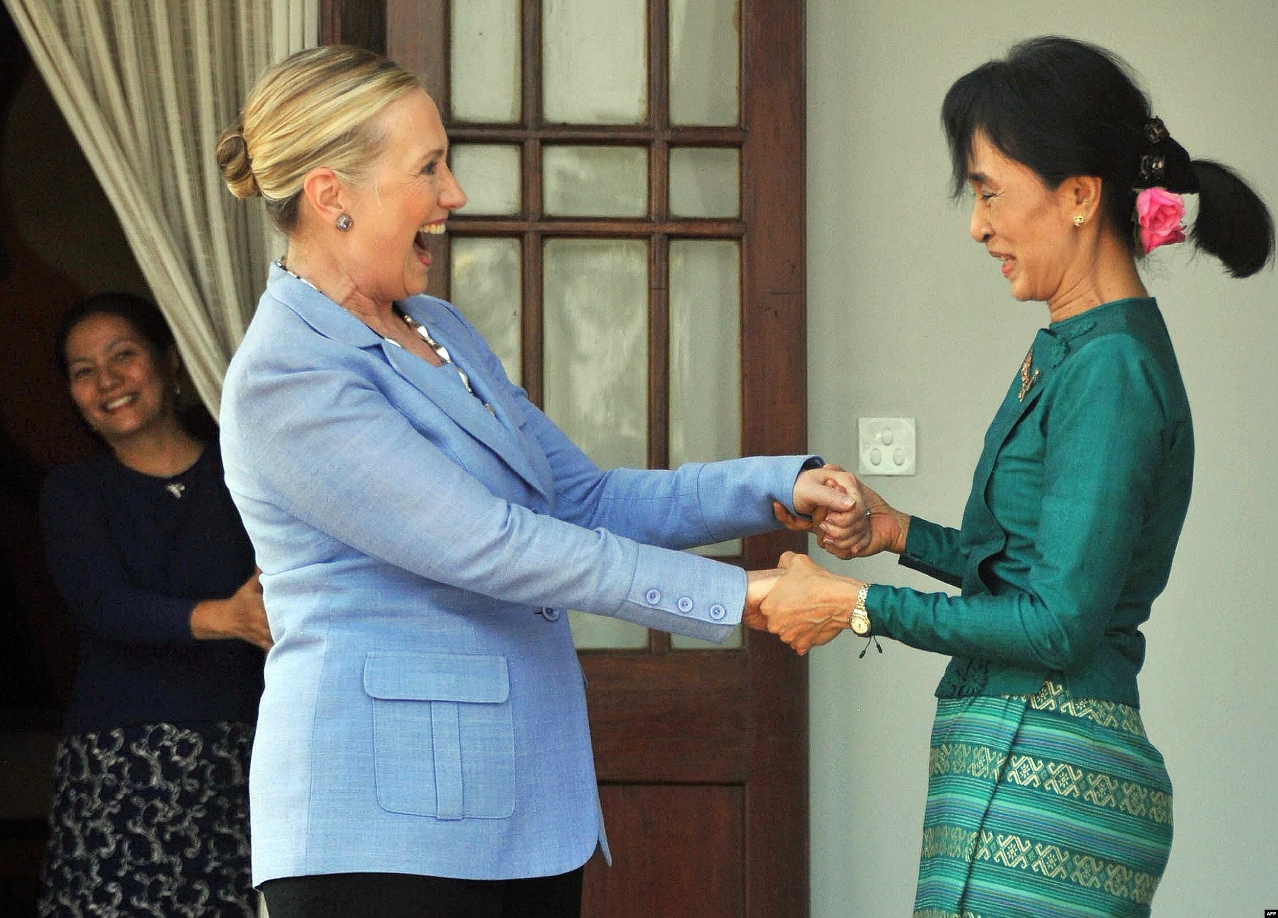 Одним из важнейших событий стала встреча и обед Хиллари Клинтон с лауреатом Нобелевской премии мира Аун Сан Су Чжи, которая год назад была выпущена из-под многолетнего домашнего ареста, а сейчас претендует на роль всенародно избранного лидера страны. Клинтон вручила ей письмо президента Обамы. Ранее госсекретарь встретилась с президентом Мьянмы и членами его правительства. Она заявила, что желает понять, настало ли время открыть новую главу в отношениях двух стран, и что критерием для Соединенных Штатов будет готовность хозяев продолжить едва обозначившуюся демократизацию.