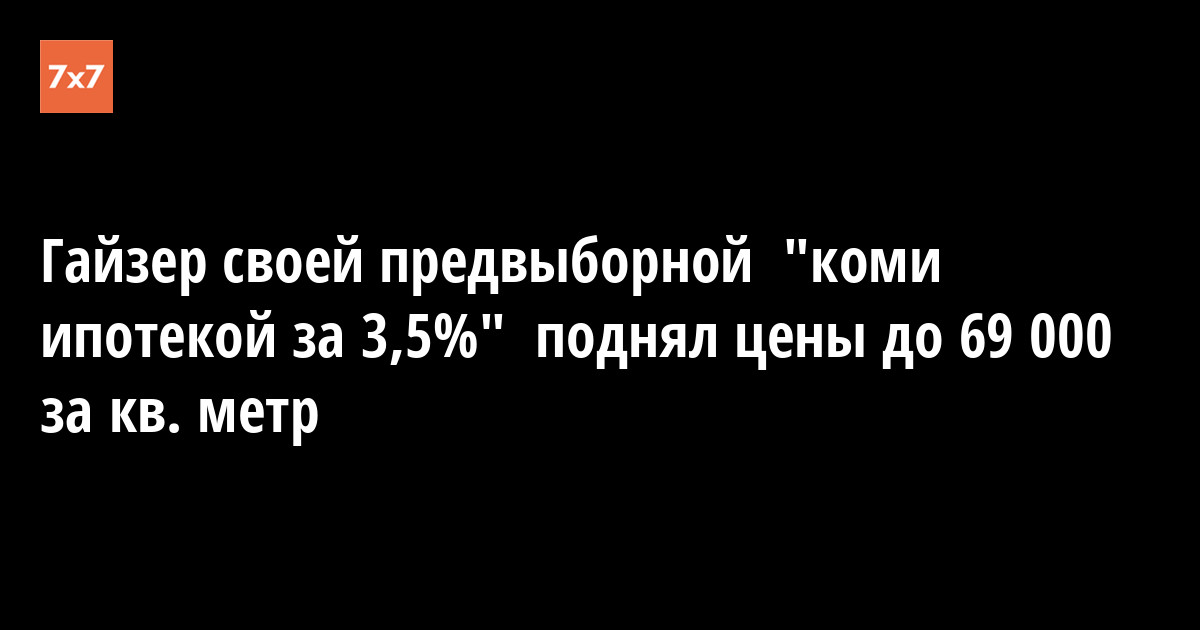 Гайзер своей предвыборной "коми ипотекой за 3,5%" поднял цены до 69 000 за кв. метр