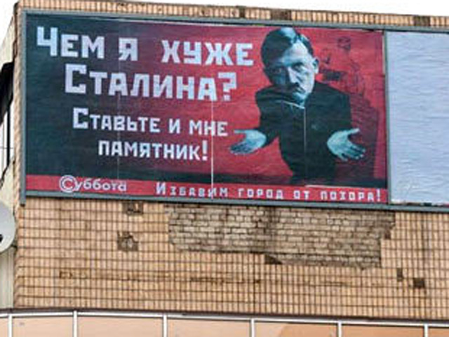 Как выяснилось, неоднозначный плакат заказали и разместили журналисты местного еженедельника "Суббота плюс" вместе с призывом "Избавим город от позора", протестуя таким образом против установки памятника Сталину в Запорожье, сообщает сайт "РепортерUA".