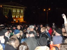 На месте оказалось очень много молодежи, вернее сказать, там была одна молодежь, студенты. Мне удалось проскочить и протиснуться в самую «гущу событий» .