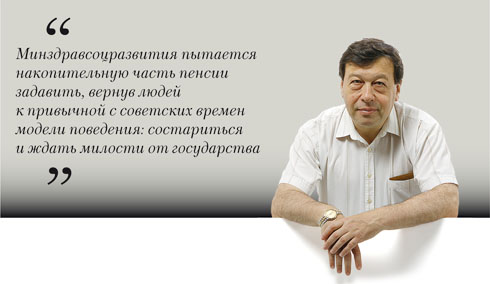 Что ж, у чиновников всегда интерес краткосрочный. Они не думают на перспективу. А ведь пенсионная система планируется на 50 лет вперед. Увы, такой длинный жизненный цикл с политическим у нас никак не связан. Тем более что президент Медведев уже объявил, что в следующем правительстве министерство Голиковой снова будет делиться — на Минтруда и Минздрав соответственно. И те чиновники, которые сейчас сидят в своих креслах, рискуют их потерять. Поэтому им надо немедленно как-то отчитаться, сделать г-ну Путину приятное — чтобы он смог в очередной раз поднять пенсии на 100 рублей. А там хоть трава не расти…
