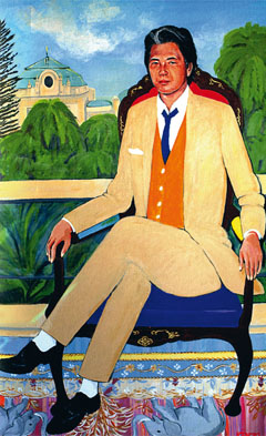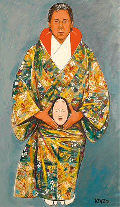 Живопись открывает нам нового Кензо, объясняющегося языком символов и масок, настраивающего на созерцание и размышление. Верность традиционному искусству Востока с его любовью к символам соединяется в полотнах с открытым цветом, характерным скорее для европейских художников. На некоторых полотнах изображен сам автор, облаченный в японские кимоно. «Однажды я смотрел книгу о театре Но, — рассказывает он, — и подумал, а почему бы мне не попробовать изобразить этих героев? Ведь здесь столько интересных образов! Стал искать натуру среди знакомых, но, к сожалению, не смог никого найти. Я измучился этим поиском! А однажды посмотрел в зеркало и сказал себе — не нужно никого просить об одолжении. Я нарисую себя».