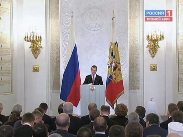 5 ноября 2008 года к Федеральному Собранию впервые обратился президент Дмитрий Медведев. Инициативы в сфере политической системы, выдвинутые в Послании, стали впоследствии законами. Так, в Конституцию внесены поправки, увеличившие сроки полномочий президента страны до 6 лет, а Госдумы - до 5 лет. Кроме того, расширены конституционные права парламента и отнесены к предмету ведения Госдумы контрольные функции в отношении исполнительной власти. Соответствующие поправки в Конституцию вступили в силу 31 декабря 2008 года. В 2009 году были подписаны ряд федеральных законов, касающихся избирательной системы. Парламентская трибуна была предоставлена партиям, не получившим положенных по закону 7% голосов избирателей, но преодолевшим 5-процентный барьер.