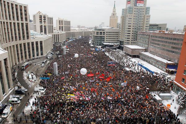 Фото: Reuters Сегодня на проспекте академика Сахарова в Москве прошел второй митинг “За честные выборы”. На странице группы акции в Facebook свое участие подтвердили почти 40 000 человек. Максимальное число участников субботнего митинга, как утверждают в полиции, составило 29 тысяч, организаторы назвали цифру 120 тысяч человек. По итогам митинга была принята резолюция с требованием провести новые "открытые и честные выборы" и отставки председателя ЦИК Владимира Чурова. В документе отмечено, что власти не выполнили требования митинга, который состоялся на Болотной площади 10 декабря.