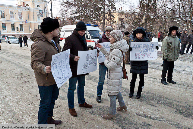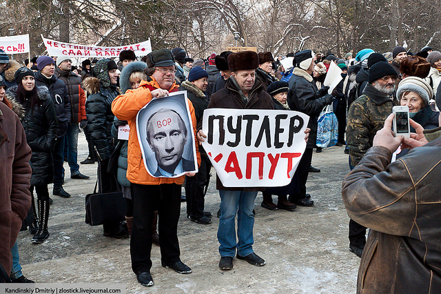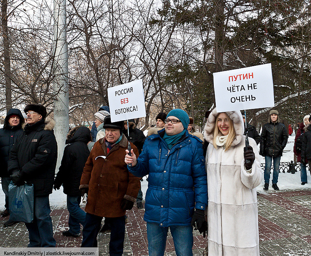 Лозунги были старыми: "Россия без Путина", "Кресса в отставку", "Путин - ноль", а вот плакаты уже радуют своей оригинальностью