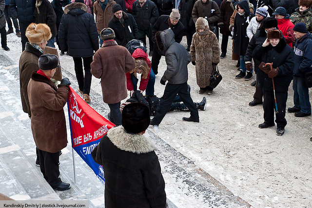 Флагов было немного, все ограничилось только КПРФ и Солидарностью