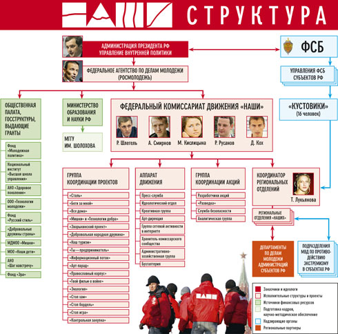 Контроль за деятельностью «Наших», отслеживание исполнения поставленных задач и мониторинг правильного использования средств осуществляют «кустовики» — негласные помощники ФСБ