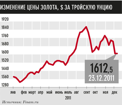 Аналитики Morgan Stanley уверяют: в 2012 году золото будет более интересным объектом для инвестирования, чем акции или валюта. Самым надежным активом для инвестирования назвал золото в недавнем интервью Bloomberg и российский миллиардер Михаил Прохоров. Евгений Надоршин не разделяет этого мнения: он допускает, что к обвалу котировок золота может привести внезапный прилив оптимизма на рынках — если инвесторы поверят, что все будет хорошо и решат «выйти» из золота, вернувшись в ту или иную валюту или надежные гособлигации. Отчасти так уже и происходит, говорит аналитик «Инвесткафе» Сергей Глушков: «Доверие к золоту пошатнулось, — замечает он. — Симпатии рынка смещаются в пользу доллара в ущерб золоту. Оба эти актива относятся к классу «убежищ», а потому являются соперниками». По мнению аналитика, в перспективе I квартала 2012 года золото будет оставаться ниже уровня $1700 за тройскую унцию.
