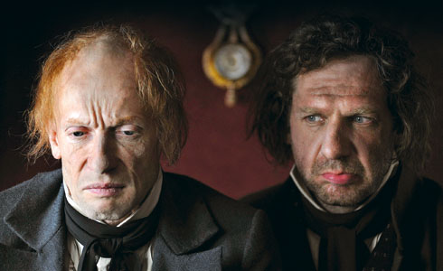 Мефистофеля в картине, строго говоря, нет: этого антисанитарного типа называют просто Ростовщиком, он лишен какой бы то ни было инфернальности, извергает из своего бесполого тела не адское пламя, а зловоние, поскольку страдает желудочно-кишечными расстройствами — в таком приземленном облике его изображает Антон Адасинский, актер с великолепной пластикой, побуждающий вспоминать гигантов немого кино.