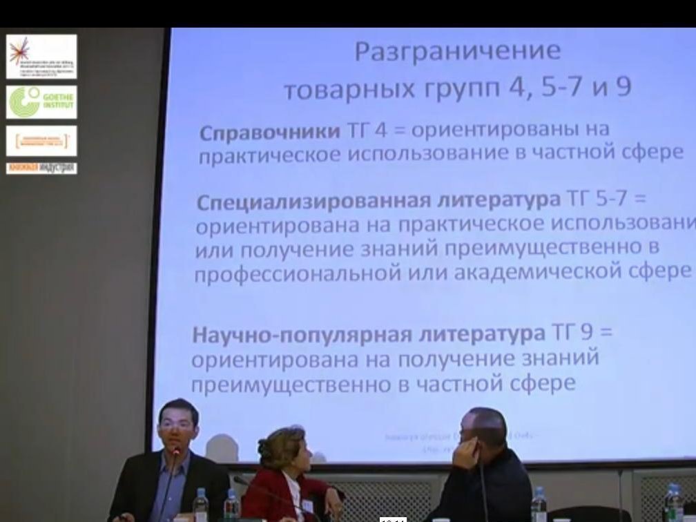Поэтому очень часто мы говорим о том, что в данном случае книга является осязательным материальным подтверждением уже имеющихся фактов или она занимается вопросами конкретной репрезентации. И, может быть, она связана с тем, используется ли она для развлечения или, может быть, она представляет какую-то историю, связанную с жизнью автора, например. И поэтому я должен сказать, что каждая книга должна иметь свою особую специфику, учебники, научное введение, информация, как электронные книги должны постоянно подвергаться актуализации, они должны экономить место и должны быть постоянно доступными. И, кроме того, таким образом, они в отличие от тех контентов, которые доступны в сети, должны обладать определенным качеством и обладать долговечностью. Поэтому в средствах массовой информации ведется большое количество различных дебатов, и мне кажется, что то, что мы наблюдаем в различных средствах массовой информации, должны продолжаться также в книге, в том числе в электронной книге. То, что касается печатных книг, то в данном случае это будут, как правило, такие вещи как художественные альбомы, подарочные издания, семейные энциклопедии, которые обладают особым качеством, осязательным качеством, которое имеет особую оптическую форму. Примером, например, является ситуация на Франкфуртской книжной выставке. Так, например, вышла книга, которая весила 3 килограмма, и это был большой так называемый гросс-бух об адронном коллайдере. И, по сути дела, эта книга не была призвана популяризовать эту тему, а представляла очень красивые фотографии о большом адронном коллайдере. Затем можно сказать, что необходимо использовать сходные медийные форматы. Это происходит и естественным образом, но в любом случае мы говорим о таких продуктах, как обучающие лазерные диски и DVD. И, таким образом, сейчас много ведется дискуссий о расширении, так называемое инхейнст-бук, расширенные книги, которые представляют собой расширенную электронную книгу. Но я должен сказать, что