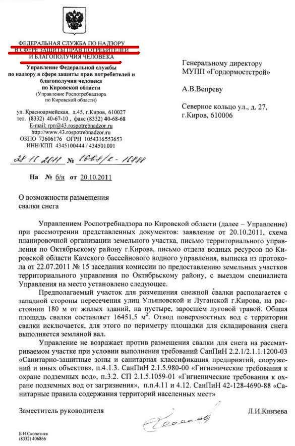 Он согласует это решение теруправлением Роспотребнадзора и Отдел водных ресурсов Росводресурсов. Это все федеральные структуры. Вот копии этих согласований.