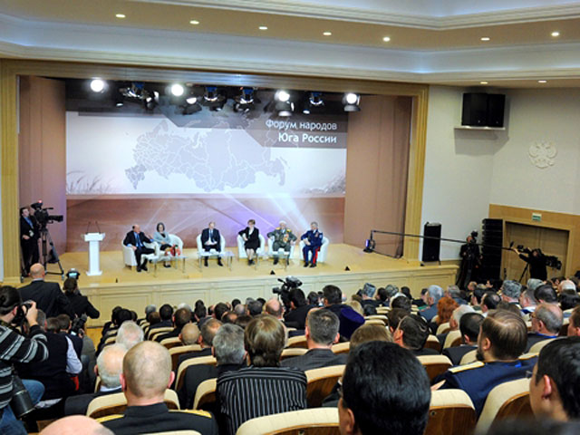Затрагивая вопрос межнациональных отношений в стране Путин подчеркнул, что конфликты на этой почве чрезвычайно опасны для России. "Уроки истории говорят об одном: о смертельной опасности любых межнациональных, межэтнических, гражданских конфликтов, о том, какие глубокие раны оставляют несправедливость и взаимная вражда", - заявил он и напомнил, что юг России "в полной мере испил чашу ужасов гражданской войны в свое время, депортации, терроризма".